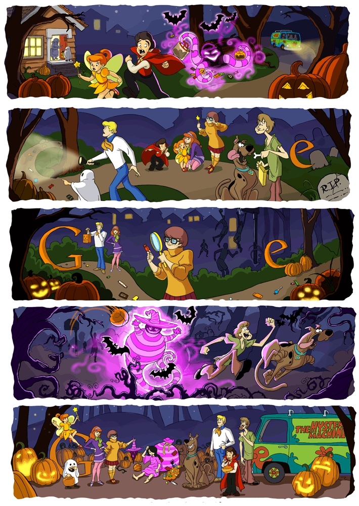 Los doodles de Google siempre nos sorprenden de manera divertida sustituyendo al colorido logo durante distintas festividades del mundo a lo largo de todo el año. Hoy, que se celebra Halloween, hemos disfrutado de uno compuesto por un episodio de cinco sketchs con Scooby Doo que logran llamar la atención de cualquiera que realice una búsqueda en el “día de las brujas”.