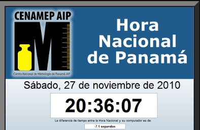 La hora panameña existe, no es un mito. Esta tarde mientras configuraba un teléfono recordé que alguna vez vi algún sitio web con la hora exacta de Panamá, así que después de una rápida búsqueda llegué al sitio del Centro Nacional de Metrología de Panamá, Cenamep, quienes cuentan con un sitio que despliega la hora nacional oficial.