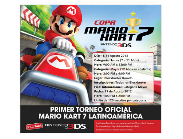 Nintendo anunció la apertura de las inscripciones para el primer torneo latinoamericano de Mario Kart 7 para 3DS en el que participarán México, Brasil, Colombia y Panamá.